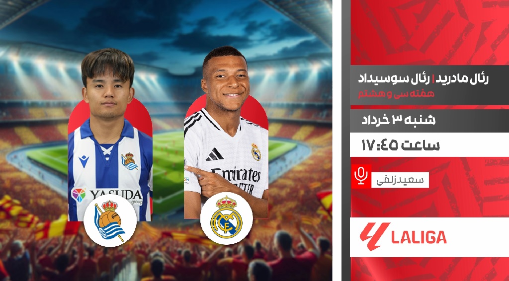 پخش زنده فوتبال لالیگا اسپانیا : رئال مادرید - رئال سوسیداد ، شنبه 3 خرداد ساعت 17:45 از شبکه ورزش سیما شنبه 3 خرداد 1404 ادامه...
