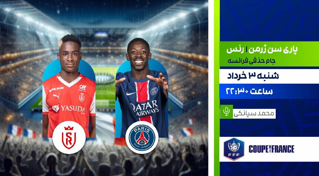 پخش زنده فینال فوتبال جام حذفی فرانسه : پاری سن ژرمن - رنس ، شنبه 3 خرداد ساعت 22:30 از شبکه ورزش سیما شنبه 3 خرداد 1404 ادامه...