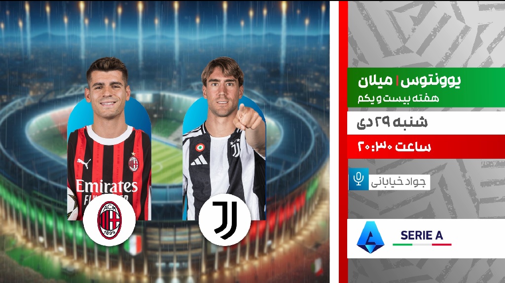 پخش زنده سری آ ایتالیا : یوونتوس - میلان ، امشب ساعت 20:30 از شبکه ورزش سیما جمعه 28 دی 1403 ادامه...