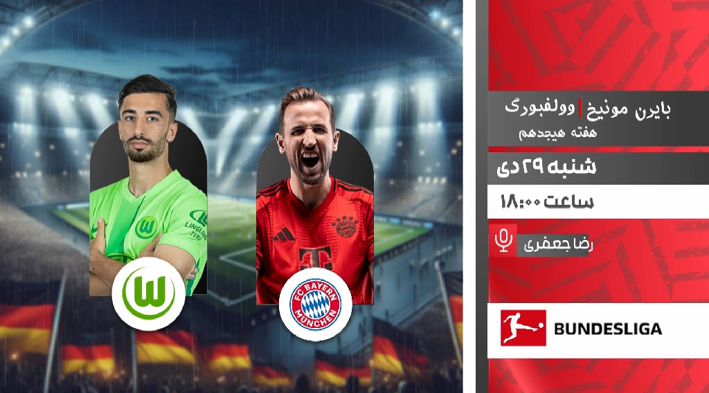 پخش زنده بوندس لیگا آلمان : بایرن مونیخ - وولفسبورگ ، امشب ساعت 18:00 از شبکه ورزش سیما جمعه 28 دی 1403 ادامه...