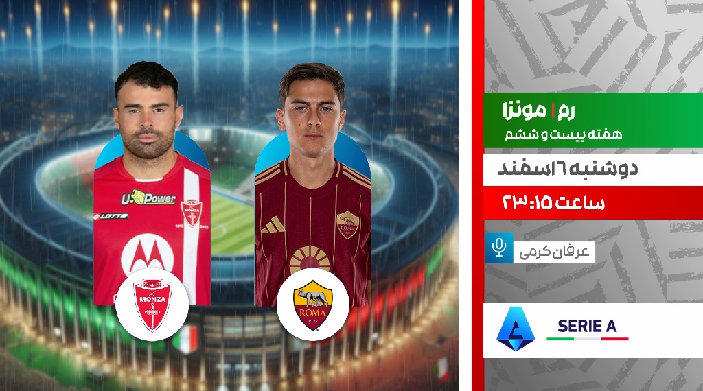 پخش زنده فوتبال سری آ ایتالیا : رم - مونزا ،دوشنبه 6 اسفند ساعت 23:15 از شبکه ورزش سیما یک شنبه 5 اسفند 1403 ادامه...
