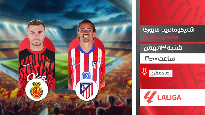 پخش زنده فوتبال لالیگا اسپانیا : اتلتیکو مادرید - مایورکا ، شنبه 13 بهمن ساعت 21 از شبکه ورزش سیما سه شنبه 9 بهمن 1403 ادامه...