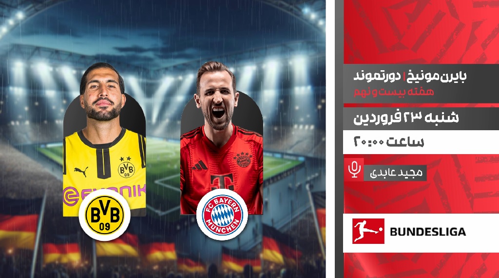 پخش زنده فوتبال بوندس لیگا آلمان : بایرن مونیخ - دورتموند ، ساعت 20:00 از شبکه ورزش سیما چهار شنبه 6 فروردین 1404 ادامه...