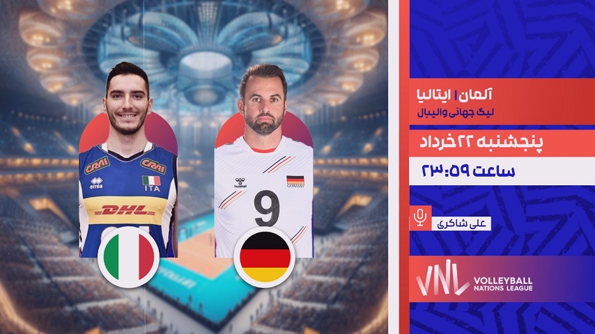 پخش زنده والیبال لیگ ملت ها : آلمان – ایتالیا، پنجشنبه 22 خرداد ساعت 23:59 از شبکه ورزش سیما پنج شنبه 22 خرداد 1404 ادامه...